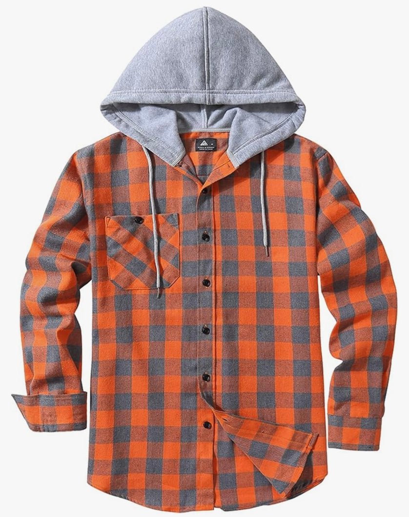 Flannel Jacket Button -Down with Hood
